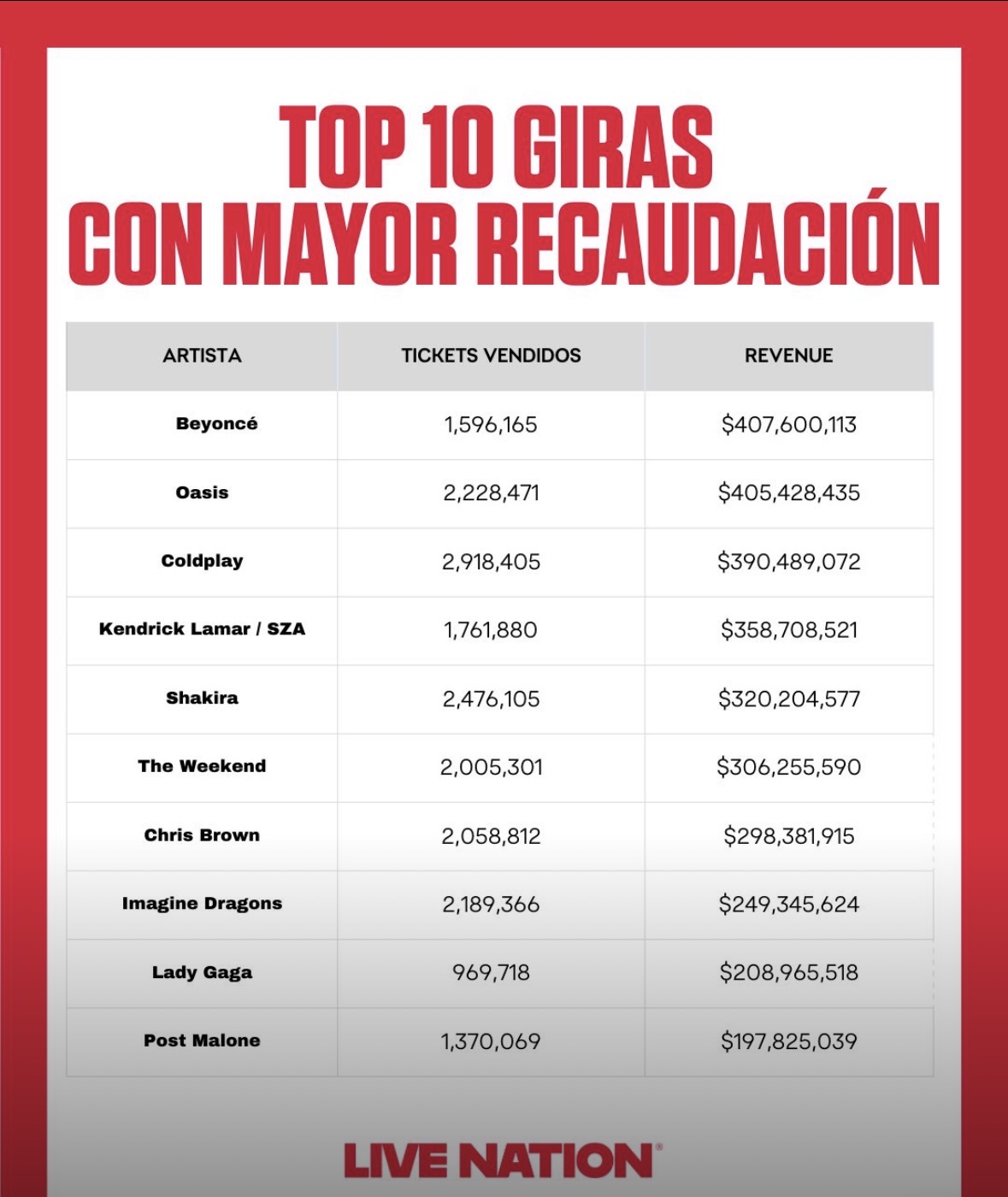 Con el inicio del nuevo año, es un buen momento para analizar las cifras astronómicas que nos dejaron las giras musicales en 2025. Artistas como Beyoncé, Oasis o Coldplay no solo llenaron estadios, sino que generaron cientos de millones de dólares en ingresos. Pero, ¿cuál es el secreto detrás de estos números?